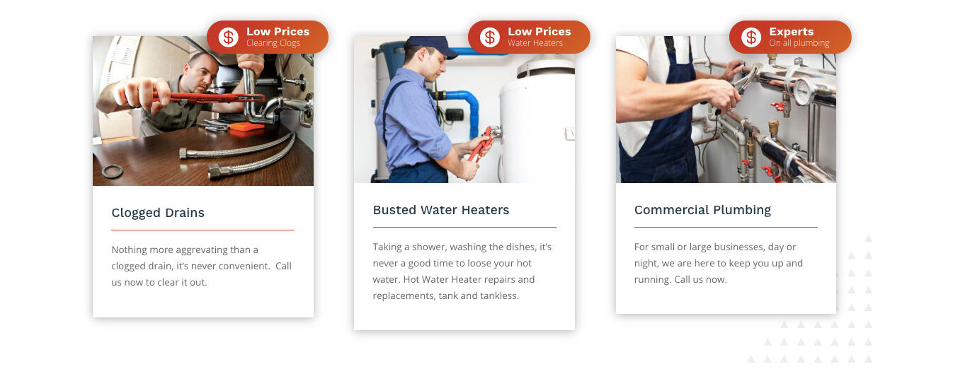 Busted Water Heaters, Clogged Drains, Toilets, Bathtubs, Showers Sinks, all plumbing related appliances.